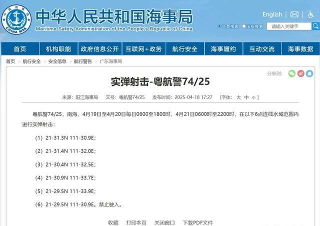 更令马科斯始料未及的是,中国海事局接连宣布从4月19日开始在南海部分海域举行为期数日的实弹射击训练。